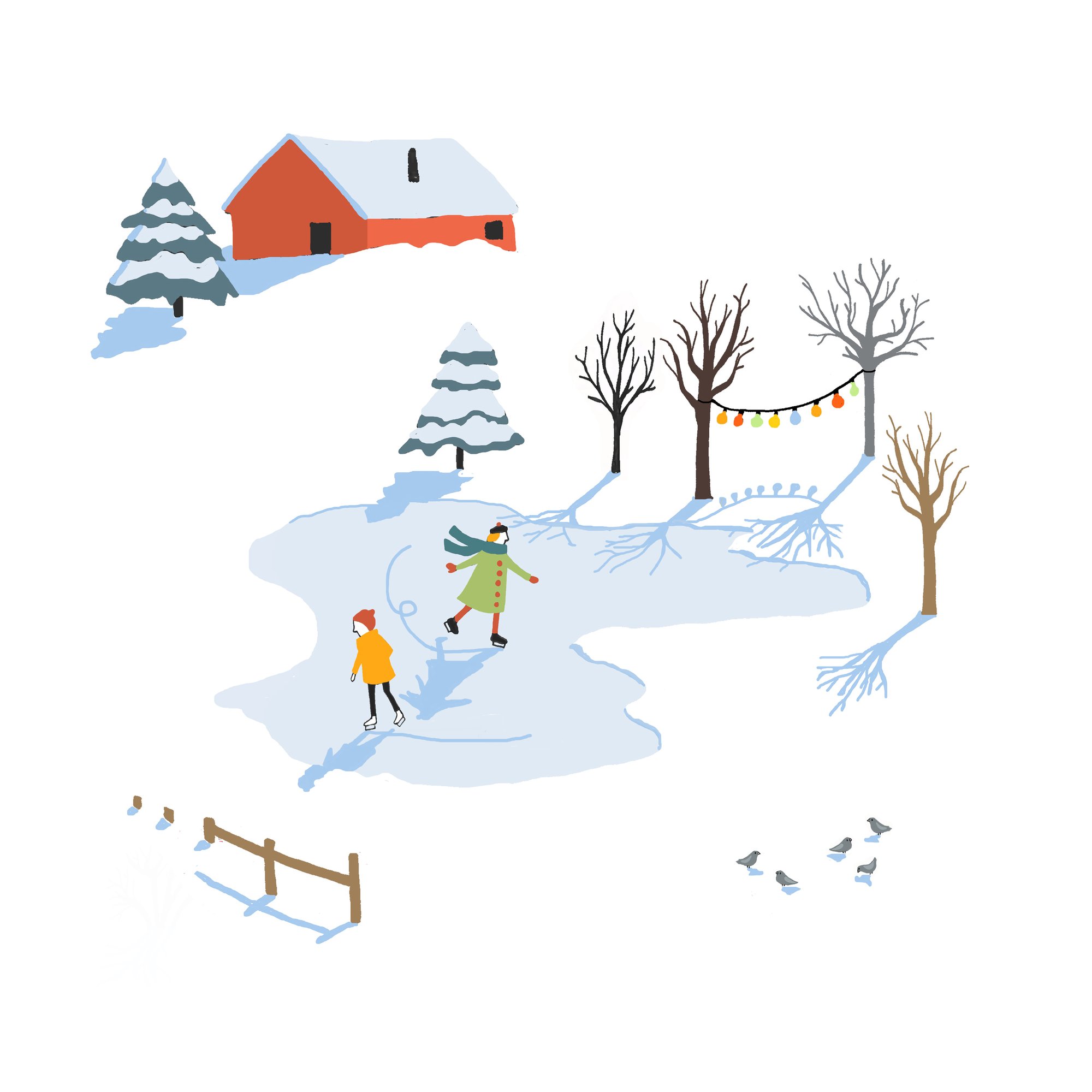 Pack of 4 beautifully simple cards detailing quiet wintery scenes.